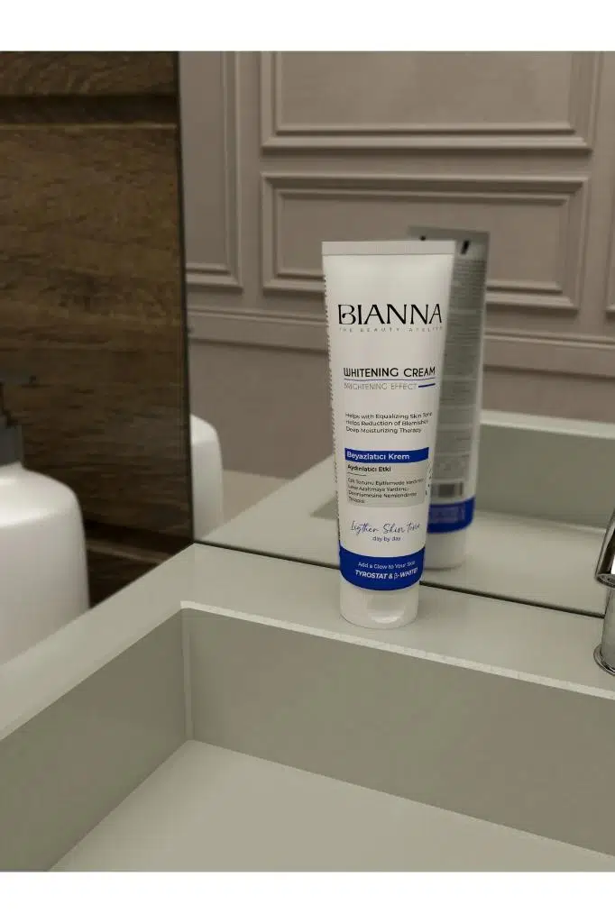 Bianna Beyazlatıcı Whitening Krem - Aydınlatıcı ve Cilt Tonu Eşitleyici 100 ML Bianna Beyazlatıcı Whitening Krem, cilt tonunu eşitleyerek aydınlık bir görünüm sağlar. Tyrostat ve B-White içeren bu formül, cildi derinlemesine aydınlatır ve canlandırır. 100 ml boyutuyla uzun süreli kullanım sağlar Beyazlatıcı Krem