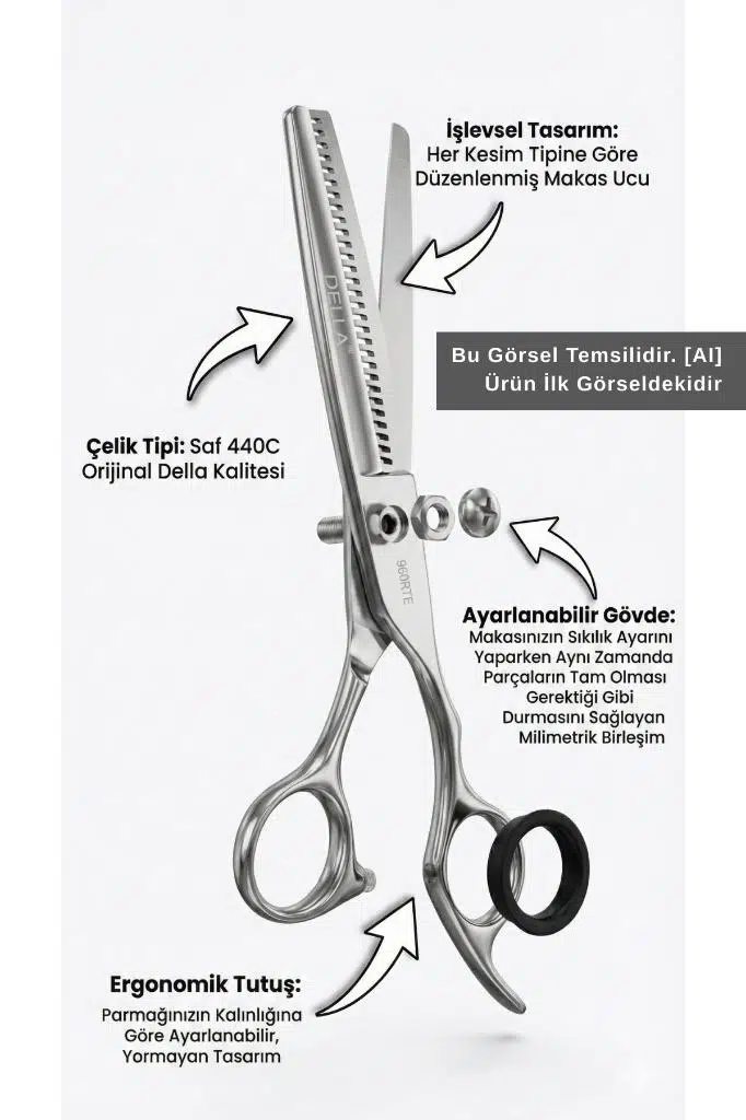 EtiketlerDella Orijinal Profesyonel 440C Saç Kesim Ara Makas 6 Numara 960RTE 60