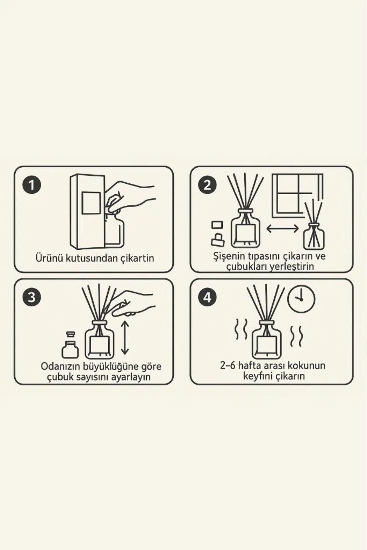 Not: Daha yoğun bir koku isterseniz çubukların yönünü haftada 1-2 kez ters çevirerek kullanım süresini yönetebilirsiniz.