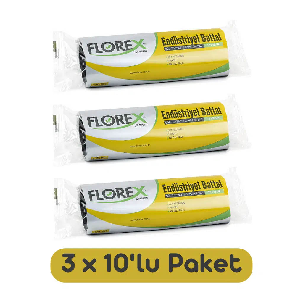 | Etiketler | Florex Endüstriyel Battal Boy Çöp Torbası 72x95 Cm 10'lu Rulo Siyah 3 Rulo (30 Adet) |