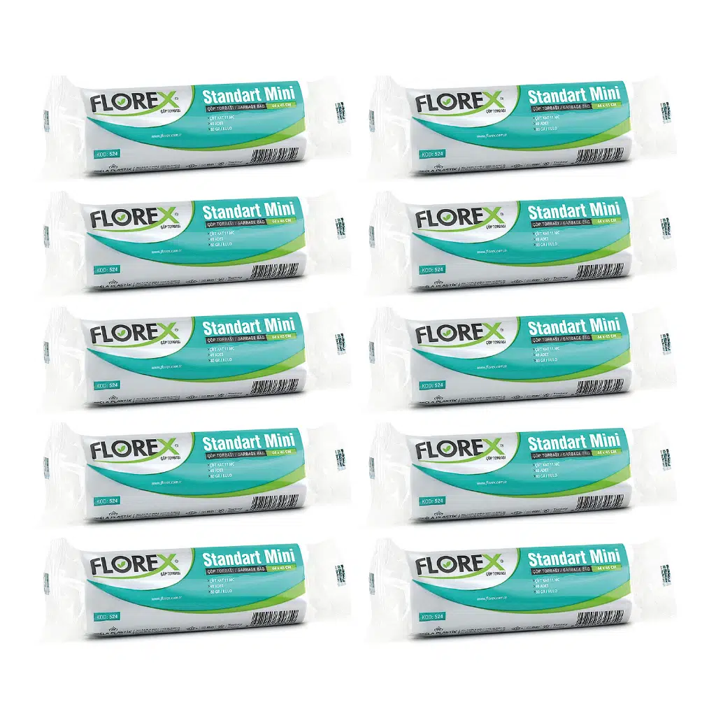 Etiketler | Florex Standart Mini Boy Çöp Torbası 44x45 Cm 40'lı Rulo Beyaz 10 Rulo (400 Adet) |
