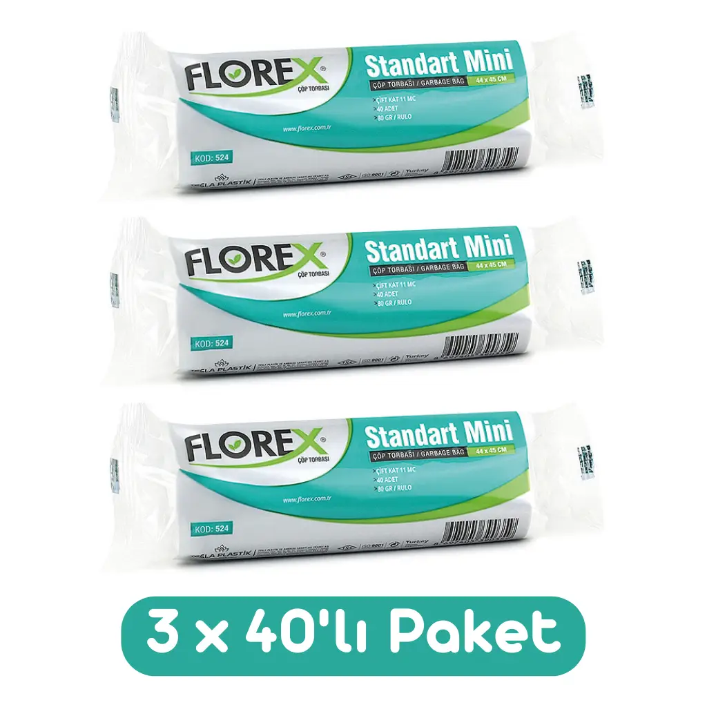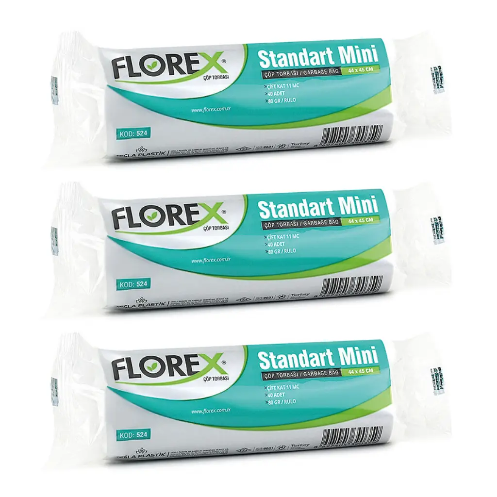 Etiketler | Florex Standart Mini Boy Çöp Torbası 44x45 Cm 40'lı Rulo Beyaz 3 Rulo (120 Adet) |