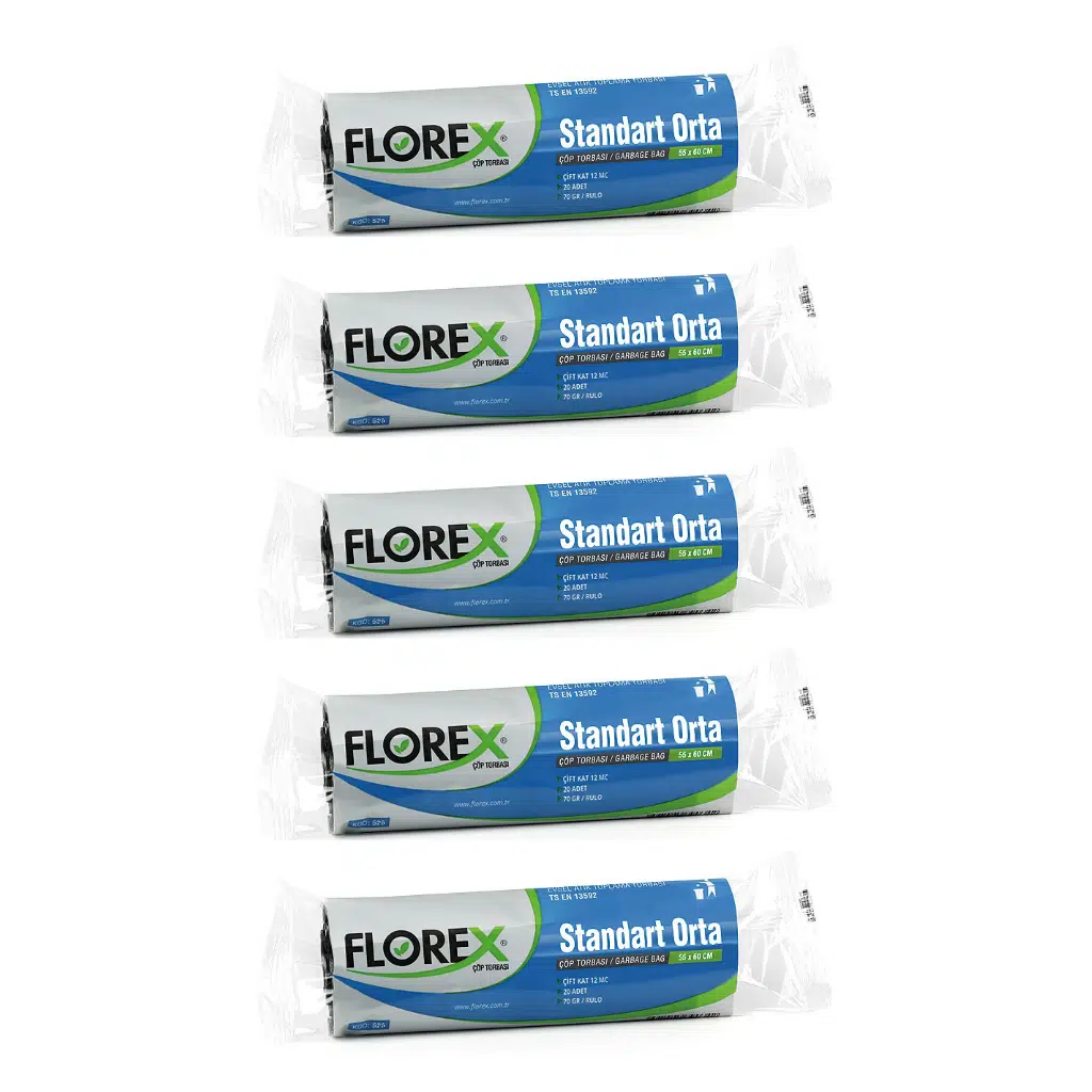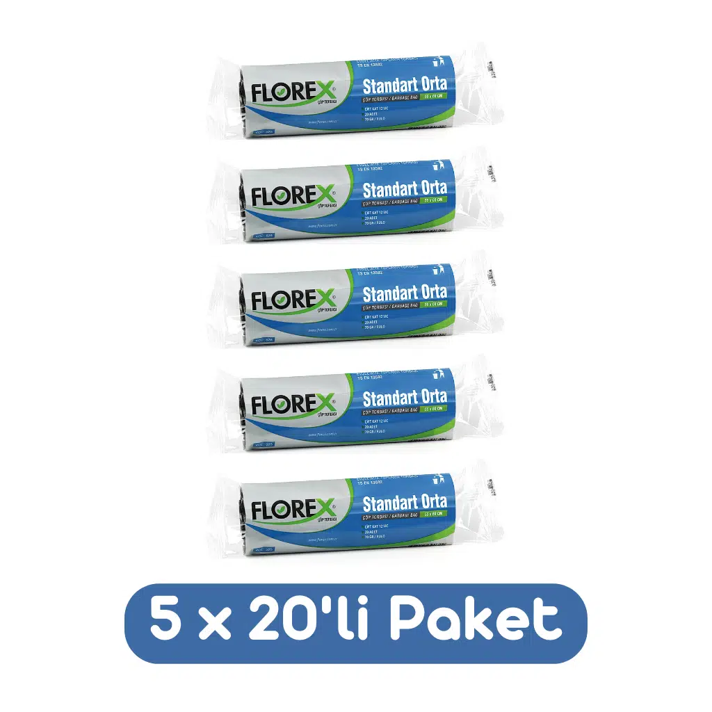 Etiketler | Florex Standart Orta Boy Çöp Torbası 55x60 Cm 20'li Rulo Siyah 5 Rulo (100 Adet) |