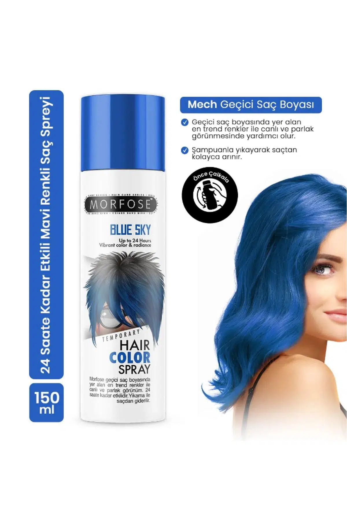 | Etiketler | Morfose 24 Saate Kadar Etkili Renkli Saç Spreyi Mavi Blue Sky 150 Ml |
