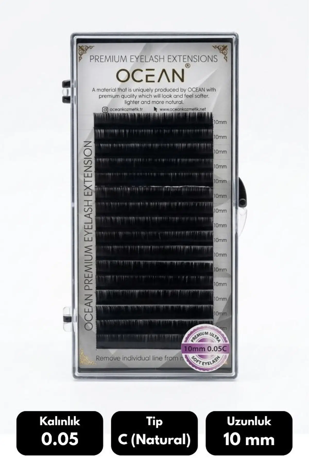 Kirpiklerin ağırlığı ve hacim etkisi seçilen kalınlığa bağlıdır. Ocean serisi, doğal kirpik sağlığını koruyan en hafif formüllere sahiptir:
