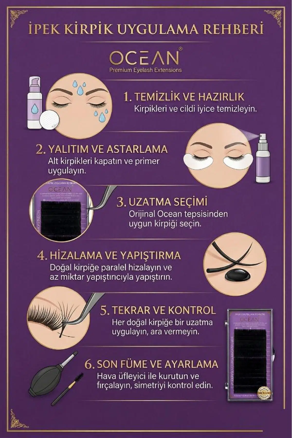 Profesyonel kirpik uzmanları için tasarlanan Ocean serisi, en ince detayına kadar optimize edilmiş 52 farklı seçenekle sunuluyor. Uygulamanızın kalitesini artırmak ve her göz yapısına uygun tasarımı oluşturmak için ihtiyacınız olan tüm teknik parametreler tek bir seride toplandı.