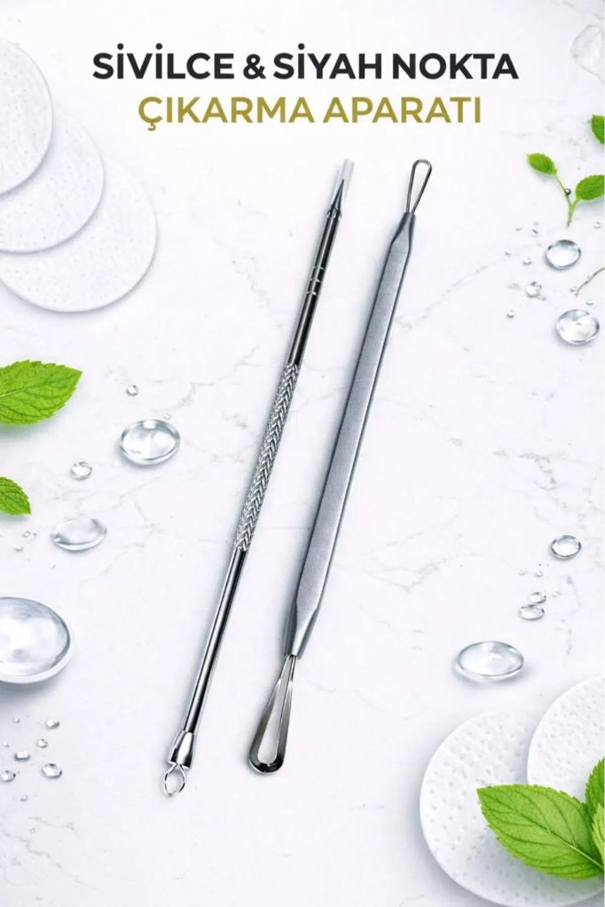 Uygulama: İğneli uçla akneyi nazikçe delin (gerekliyse), ardından halkalı ucu noktanın üzerine denk getirip hafifçe bastırarak sebumu dışarı çıkarın.