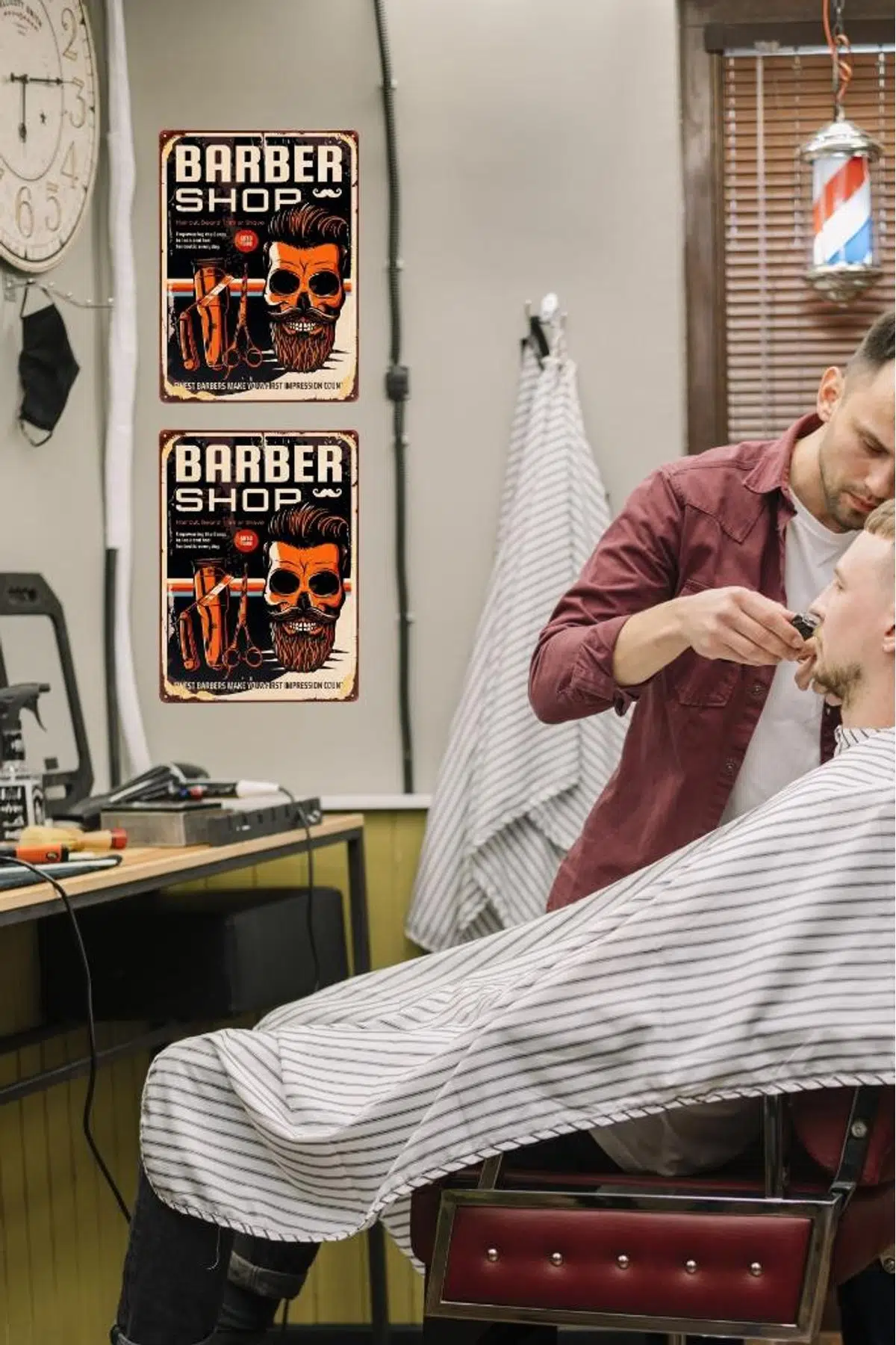 Point Barber Shop Kuaför Salonu İçin Parlak Metal Tablo Ürün Açıklaması