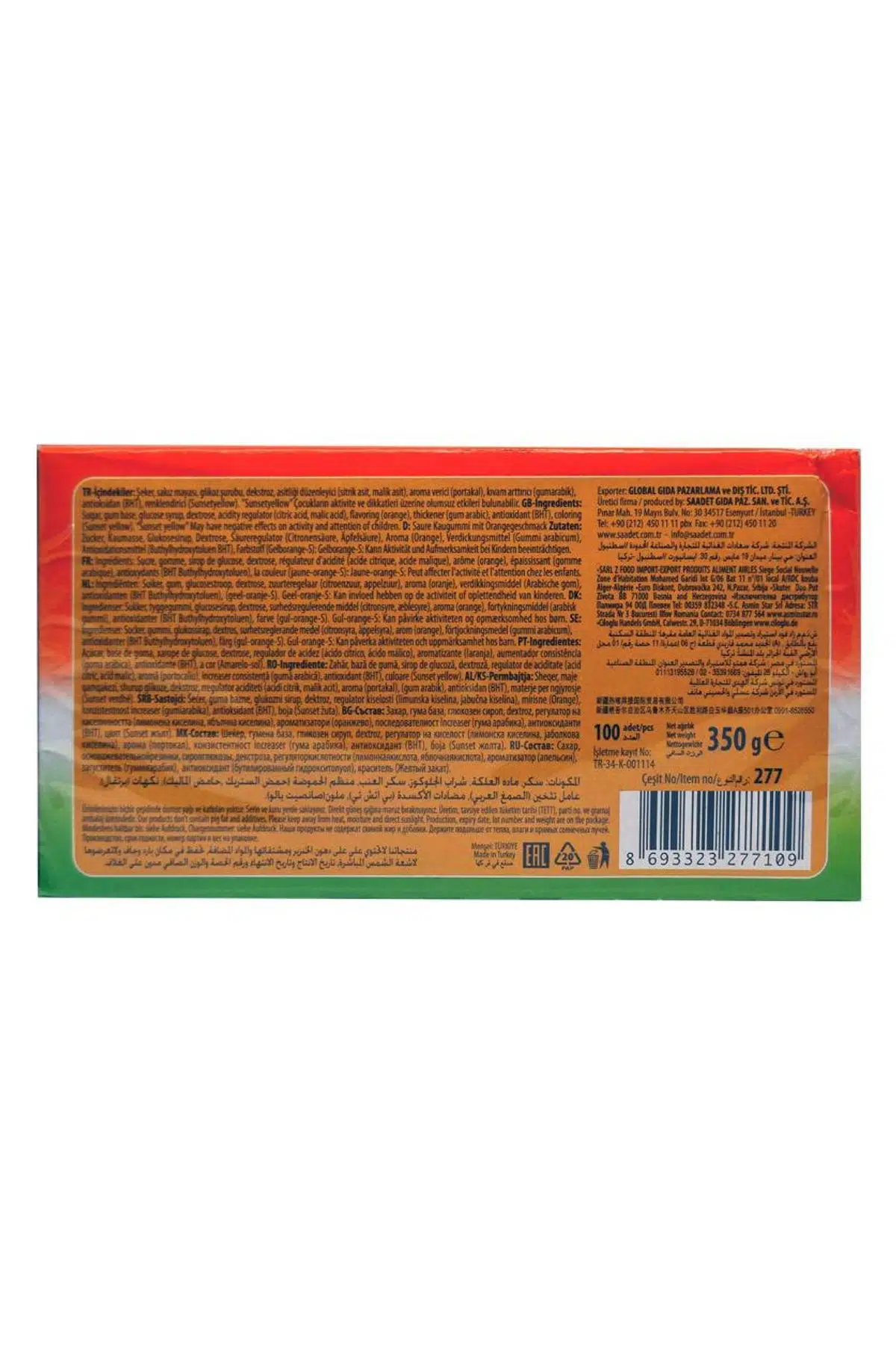 | Etiketler | Saadet Ekşiyüz 3.5 Gr x 100 Adet Portakal Aromalı Sakız |