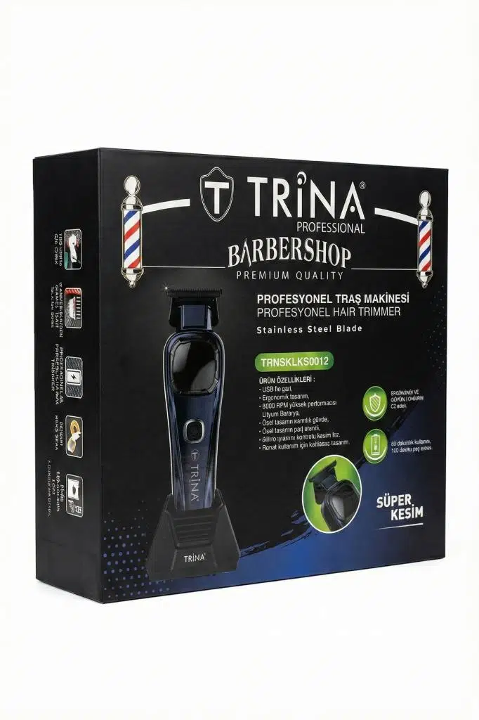 Hem profesyonel barber salonları hem de kişisel bakımına özen gösteren erkekler için tasarlanan Trina Professional Çizim Makinesi, yüksek performanslı motoru ve ergonomik yapısıyla tıraş deneyimini bir üst seviyeye taşıyor. Özellikle sakal şekillendirme, ense tıraşı ve saç dövmesi (hair tattoo) gibi hassas işlemler için idealdir.